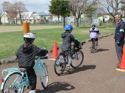 自転車の安全な乗り方の実地指導です。