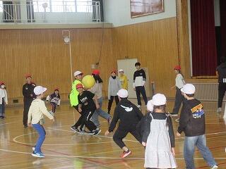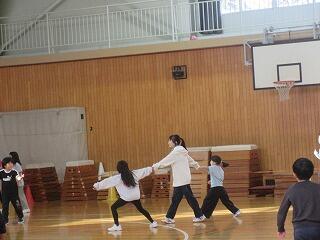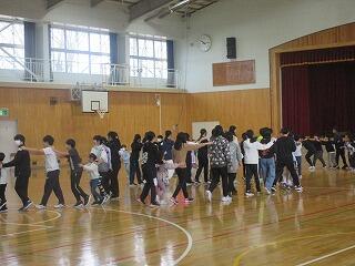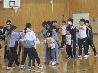 2学年が集まって、「じゃんけん列車」を楽しんでいます。