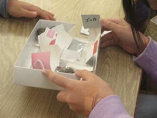 「コマ」、「迷路」「けん玉」などの遊びのコーナーでした。