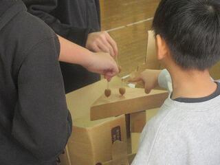 おみせやさんは、1年生が秋の木の実を使って作製した「的当て」や