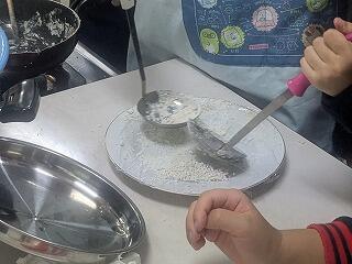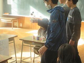 3年生が、収穫したビートで、砂糖づくりの体験をしていました。